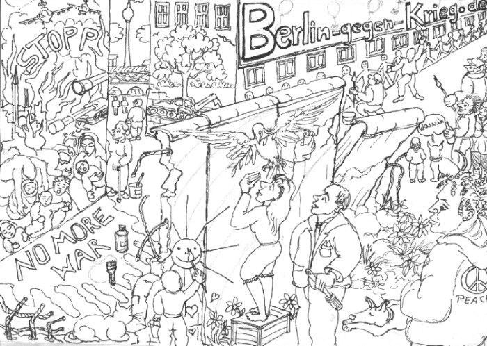 Hier werden alle Aktivitäten von "Berlin gegen Krieg" angekündigt und veröffentlicht, die von verschiedenen Unterzeichnern selbstständig organisiert werden. Wir bitten um Mitteilung von Aktivitäten und Veröffentlichungen unter unterschrift@berlin-gegen-krieg.de AUSSTELLUNG BERLIN GEGEN KRIEG