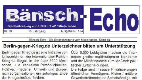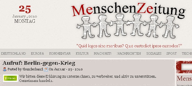 22. Dezember 2009 Veröffentlichung des Aufrufs: Berlin-gegen-Krieg.de